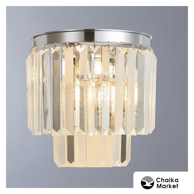 бра, плафон прозрачный (хрусталь), каркас серебристый
