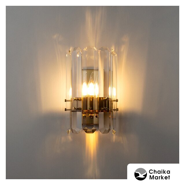 бра, плафон прозрачный (стекло), каркас золотистый