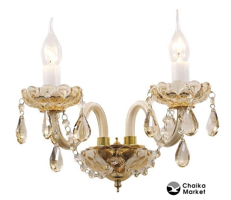 бра, плафон дымчатый/зеленый (стекло), каркас золотистый