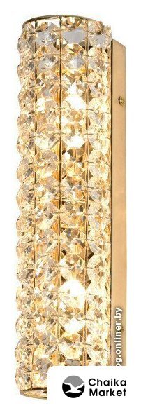 бра, плафон коричневый (текстиль/хрусталь), каркас золотистый