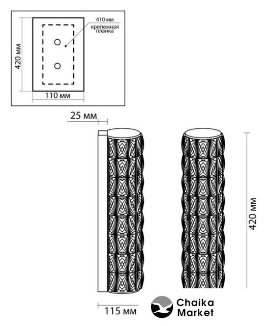 бра, плафон прозрачный/серый (стекло), каркас черный