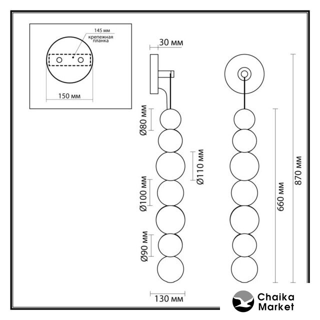 | Цвет плафонов, абажура | прозрачный, серебристый |