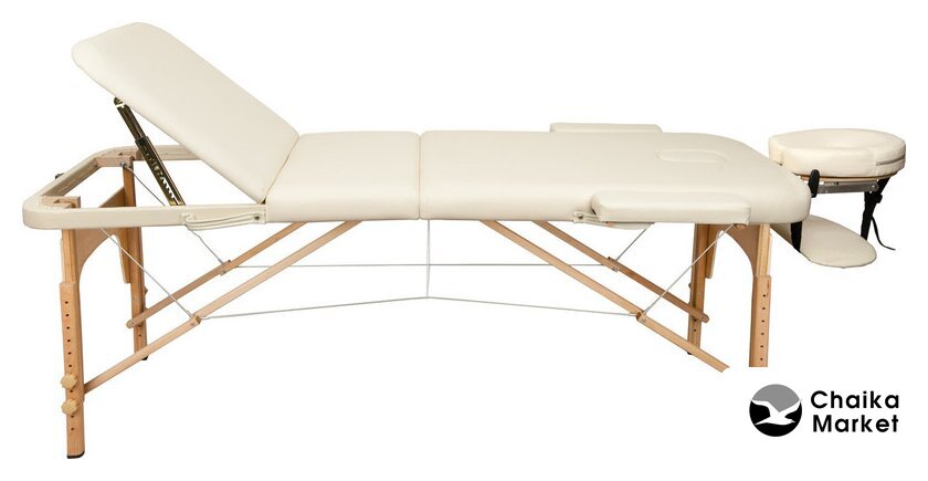 Комплектация | подголовник, подлокотники, подушка-заглушка люверса для лица, полка для рук, сумка для переноски |