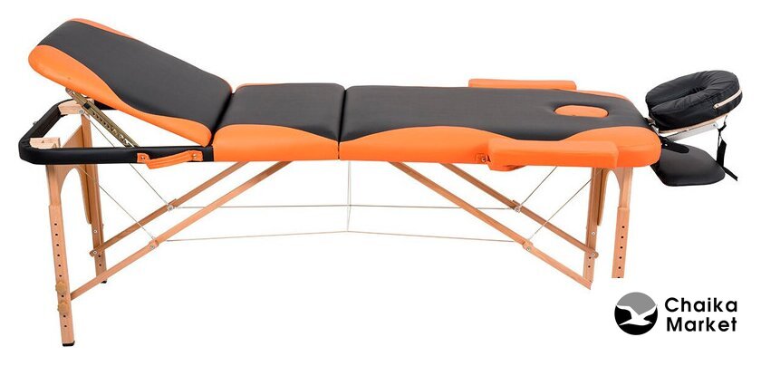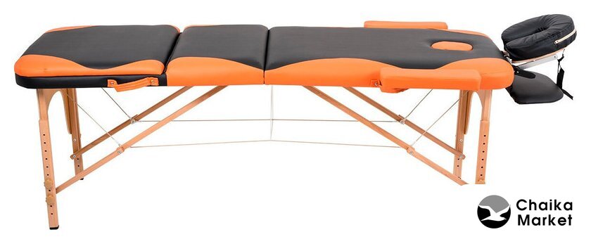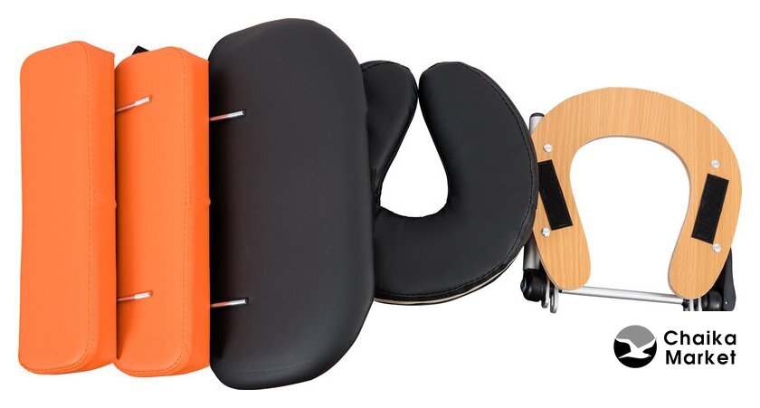 Комплектация | подголовник, подлокотники, подушка-заглушка люверса для лица, полка для рук, сумка для переноски |