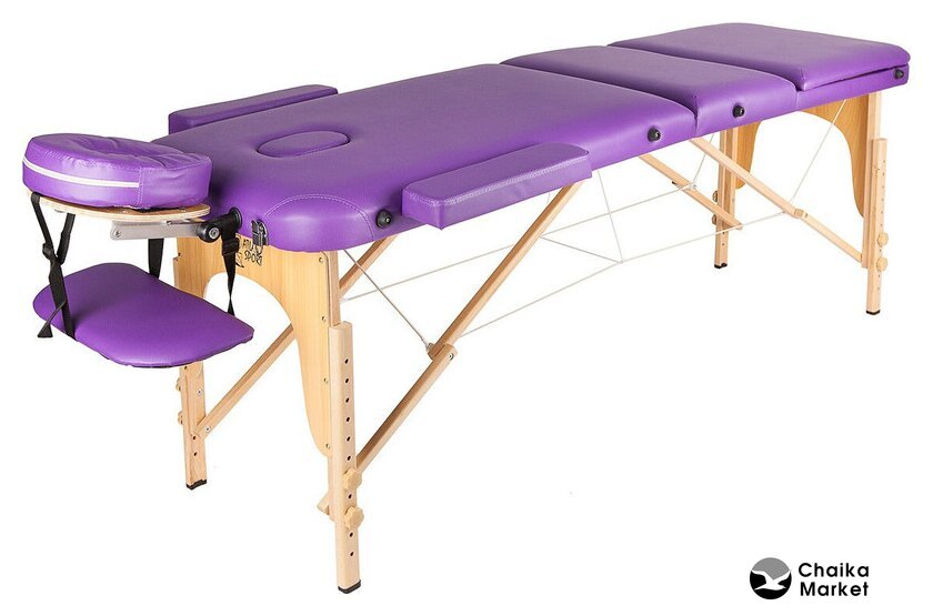 Комплектация | подголовник, подлокотники, подушка-заглушка люверса для лица, полка для рук, сумка для переноски |