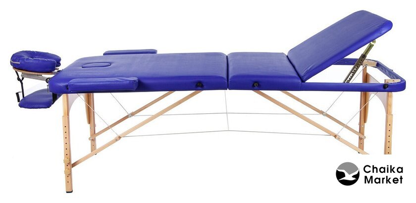 Комплектация | подголовник, подлокотники, подушка-заглушка люверса для лица, полка для рук, сумка для переноски |
