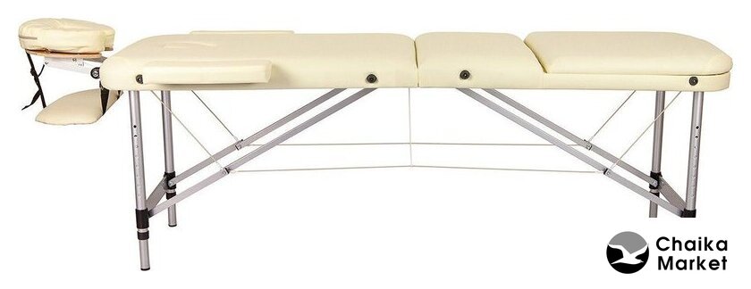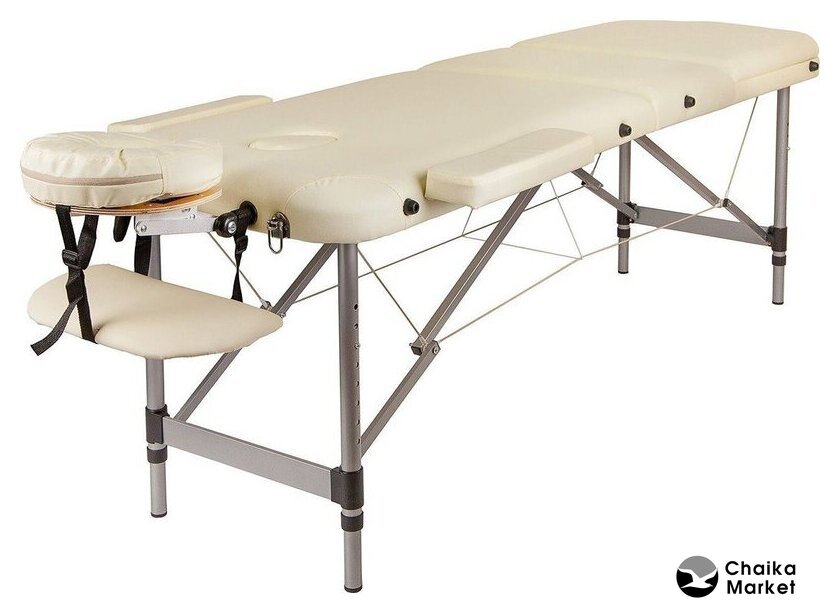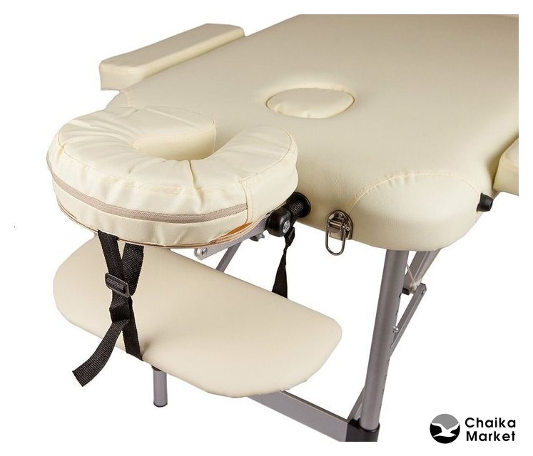 Комплектация | подголовник, подлокотники, подушка-заглушка люверса для лица, полка для рук, сумка для переноски |