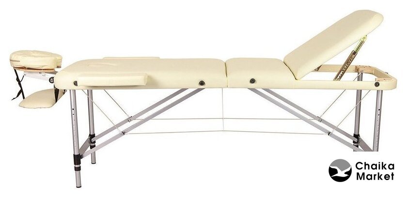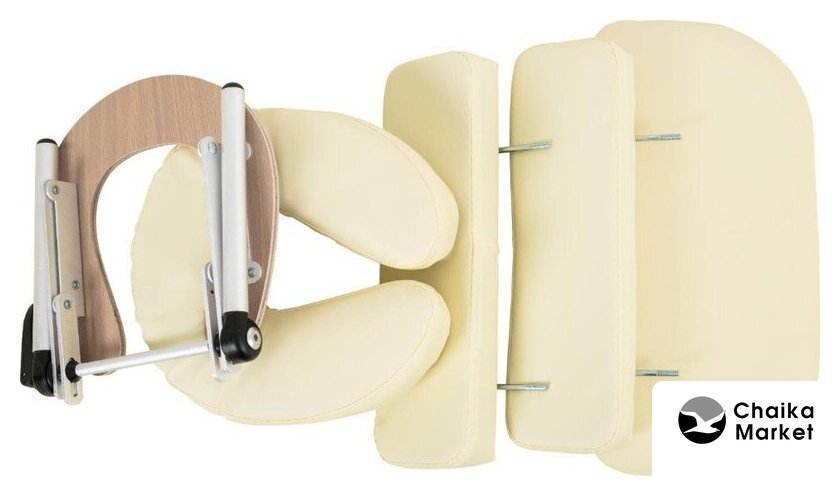 Комплектация | подголовник, подлокотники, подушка-заглушка люверса для лица, полка для рук, сумка для переноски |