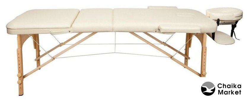Комплектация | подголовник, подлокотники, подушка-заглушка люверса для лица, полка для рук, сумка для переноски |
