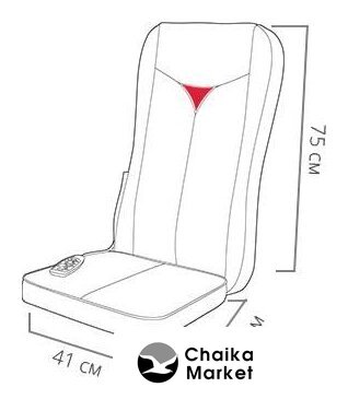 ручной режим управления, материал: пластик, роликовый массаж, воздушный массаж, массаж шиацу, разминающий массаж, комбинированный массаж, подогрев, питание: сеть 220В, размеры: 45x25x35 см