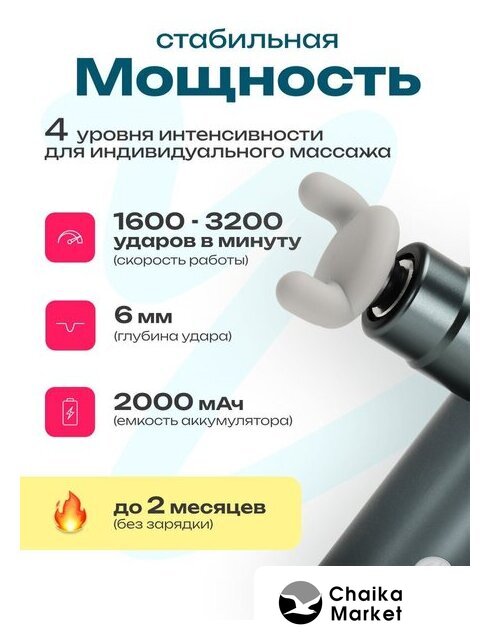 | Регулировка скорости массажа | (от 1600 до 3200 ударов в минуту) |