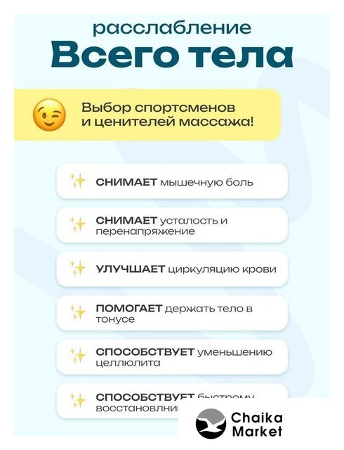 | Назначение | для ног, для рук, для тела, для шеи, для груди, для спины, для ягодиц |