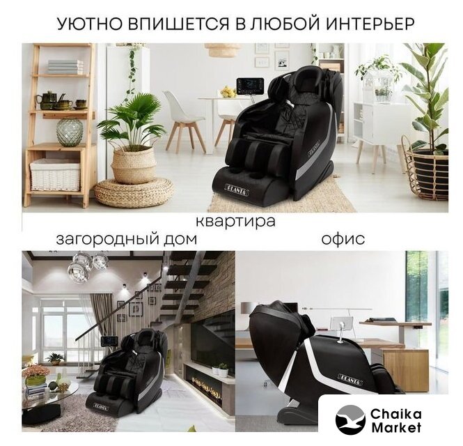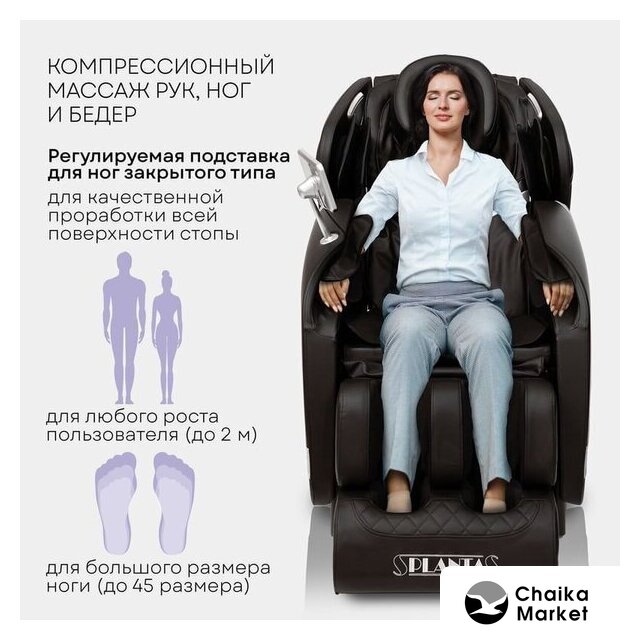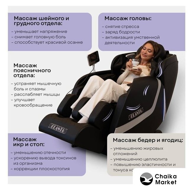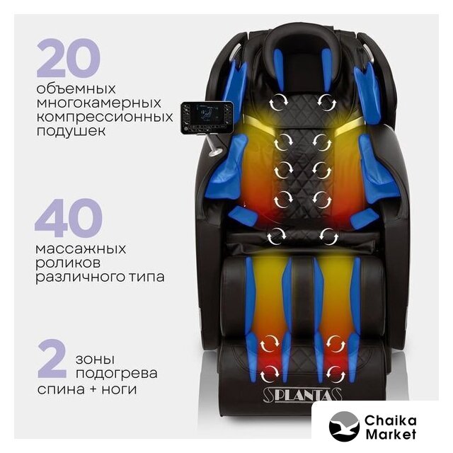 роликовый массаж, воздушный массаж, массаж шиацу, разминающий массаж, подогрев, питание: сеть 230В, размеры: 80x107x140 см