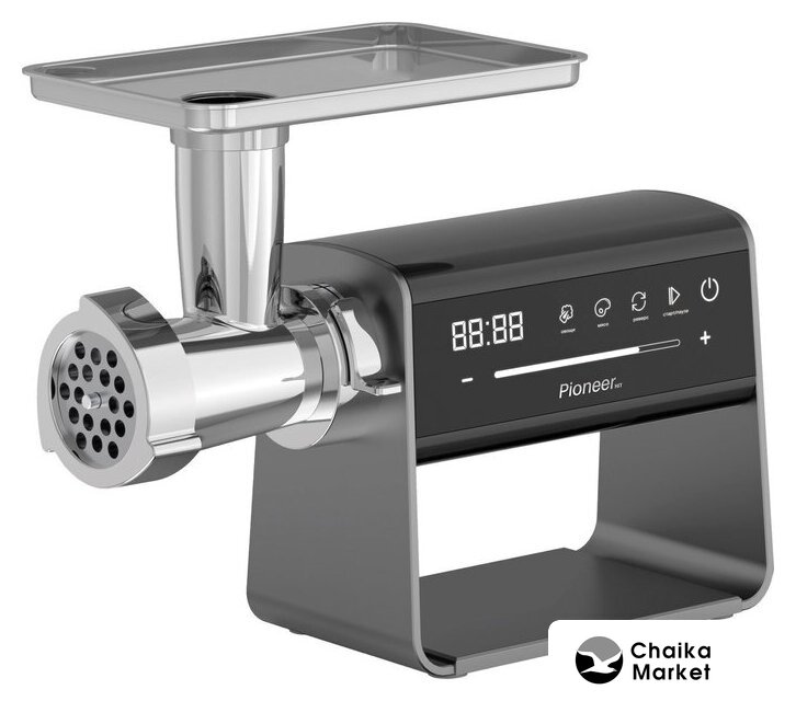 | Полная комплектация | загрузочный лоток, нож, толкатель, шнек, фиксирующая гайка, диск/решетка для фарша (2 шт.), насадка для кеббе, насадка для домашней колбасы |