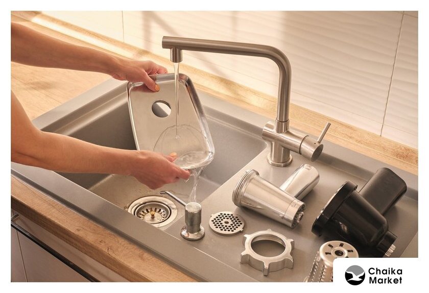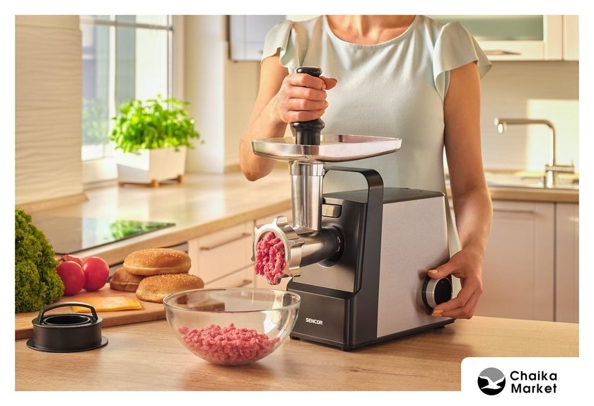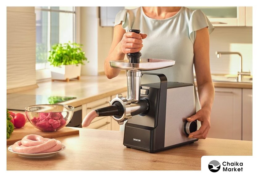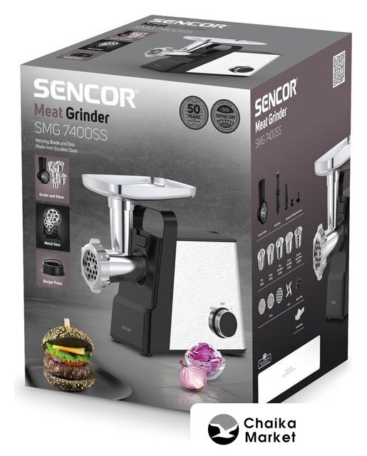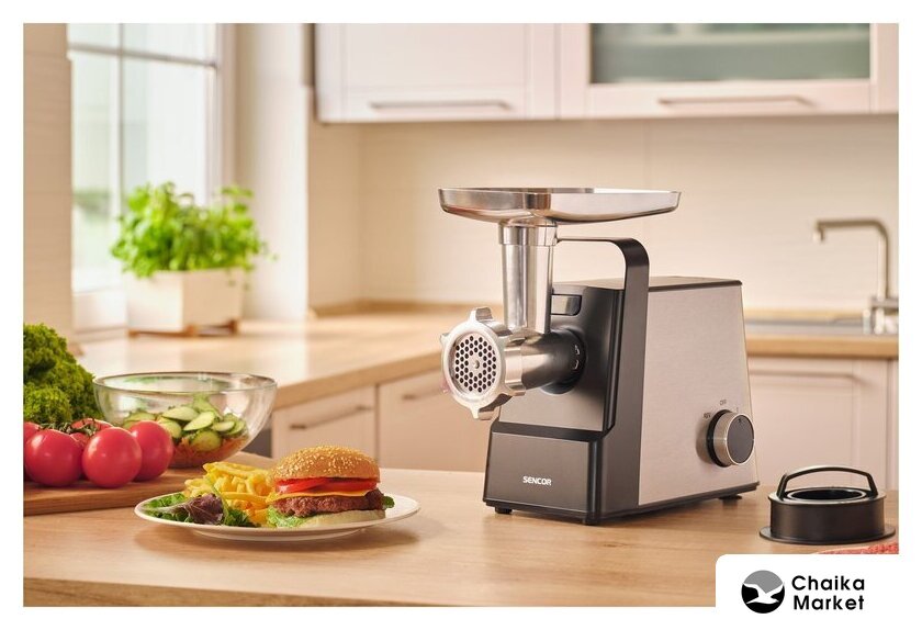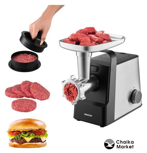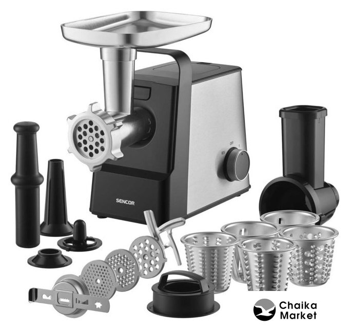 | Полная комплектация | мясорубка, 3 формовочных диска, нож из нержавеющей стали, алюминиевый поддон, толкатель, насадка для колбас, насадка для кеббе, терки для сыра и орехов, инструкция |