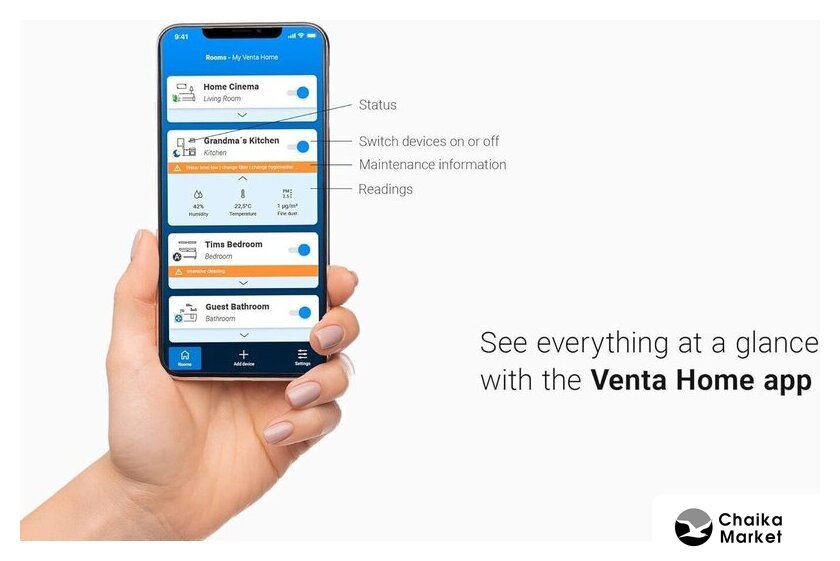 | Особенности | световая индикация уровня качества воздуха; интеграция с мобильным приложением для расширенной аналитики; рекомендации по улучшению микроклимата; совместимость с экосистемой AirConnect |