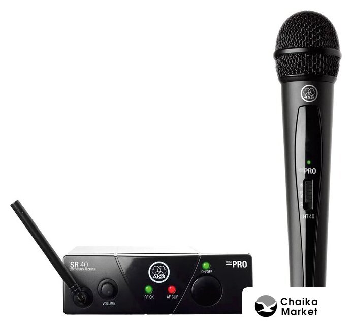 AKG WMS40 Mini Vocal Set — это профессиональная радиосистема, предназначенная для вокалистов, ведущих мероприятий, преподавателей и всех, кому нужна стабильная беспроводная передача звука. В комплект входит ручной микрофон с динамическим капсюлем и кардиоидной направленностью, а также компактный приёмник с аналоговым выходом 6.3 мм.