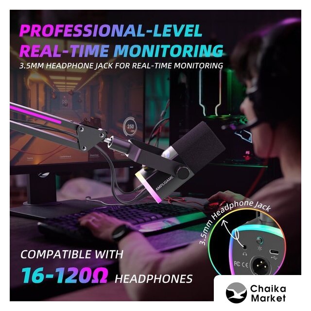 электретный (малый конденсатор), настольный, для стриминга и подкастов, кардиоидная/круговая направленность, 20-20000 Гц, разъем подключения USB Type-A