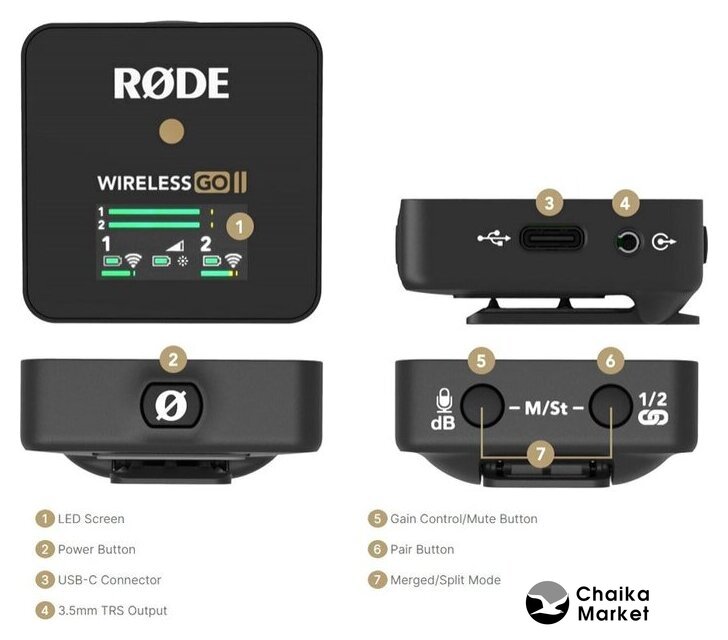 RODE Wireless GO II — это компактная беспроводная радиосистема, созданная для интервью, репортажей и видеопроизводства. Комплект включает два передатчика со встроенными всенаправленными микрофонами и один приёмник. Работают они на частоте 2.4 ГГц, обеспечивая стабильную передачу звука даже в сложных условиях.