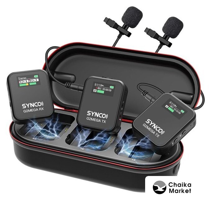 Комплект поставки | - 2 передатчика- приемник - 2 петличных микрофона- 2 съемных ветрозащиты- аудиокабель 3.5 мм TRS-TRRS - аудиокабель 3,5 мм TRS-TRS- зарядный кабель USB Type-C - USB Type-C - переходник USB Type-С - USB Type-A - зарядный кейс- документация |