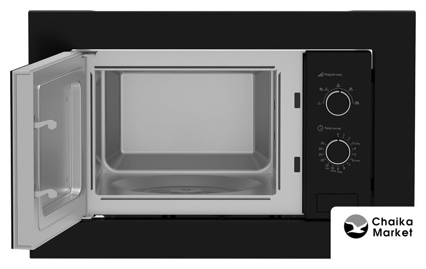 встраиваемая, микроволны (соло), объем 20 л, выходная мощность микроволн 800 Вт, управление электронное, автоприготовление, авторазмораживание, цвет черный