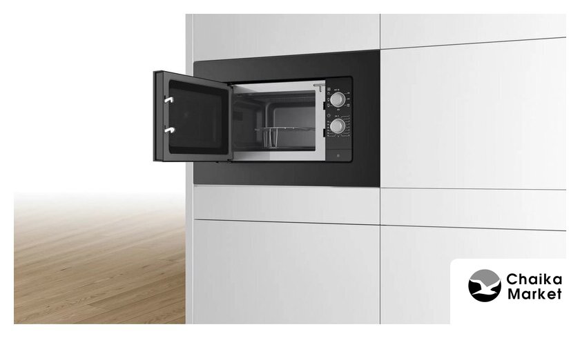 встраиваемая, микроволны (соло), объем 20 л, выходная мощность микроволн 850 Вт, управление электронное, автоприготовление, авторазмораживание, цвет черный