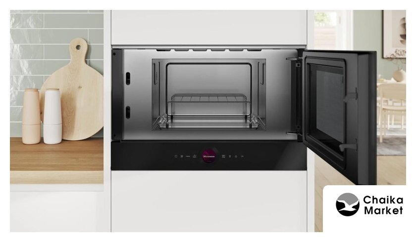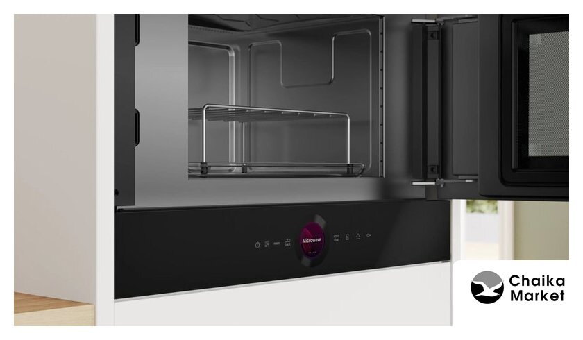 встраиваемая, микроволны (соло), объем 21 л, выходная мощность микроволн 900 Вт, управление сенсорное, автоприготовление, авторазмораживание, цвет черный