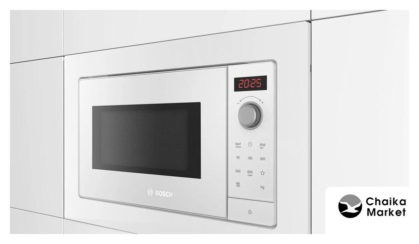 встраиваемая, микроволны и гриль, объем 25 л, выходная мощность микроволн 900 Вт, управление электронное, автоприготовление, авторазмораживание, цвет белый
