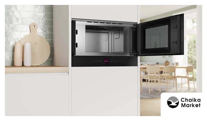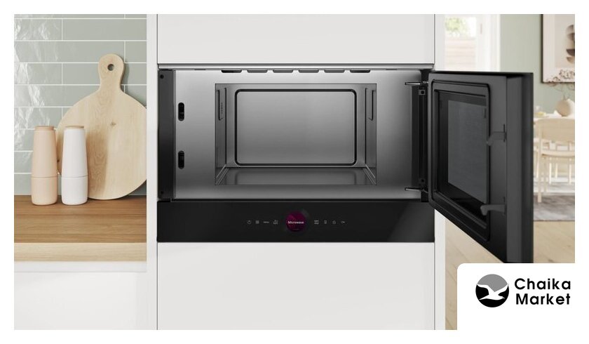 встраиваемая, микроволны (соло), объем 21 л, выходная мощность микроволн 900 Вт, управление сенсорное, автоприготовление, авторазмораживание, цвет черный