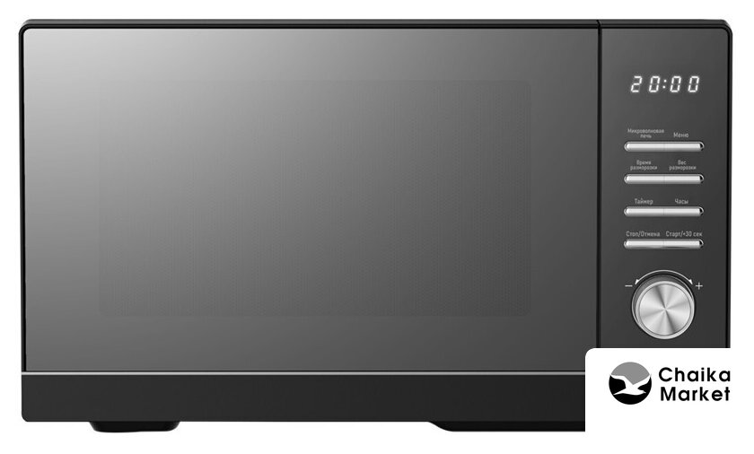 отдельностоящая, микроволны (соло), объем 20 л, выходная мощность микроволн 800 Вт, управление электронное, автоприготовление, авторазмораживание, цвет черный