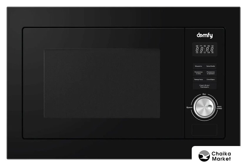 встраиваемая, микроволны (соло), объем 20 л, выходная мощность микроволн 800 Вт, управление электронное, авторазмораживание, цвет черный