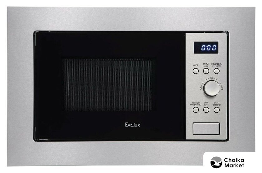 встраиваемая, микроволны (соло), объем 20 л, выходная мощность микроволн 800 Вт, управление электронное, автоприготовление, авторазмораживание, цвет нержавеющая сталь
