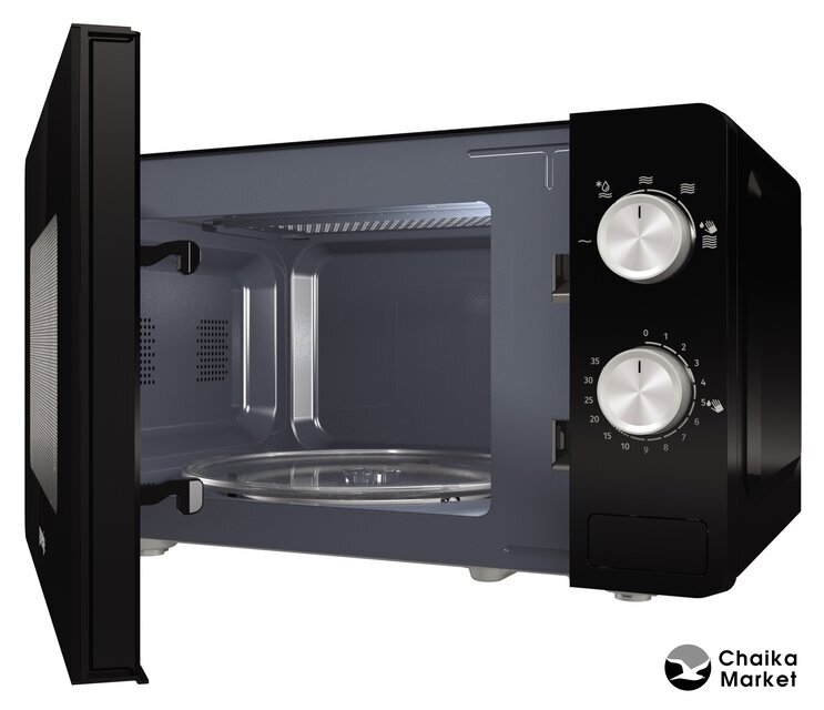 отдельностоящая, микроволны (соло), объем 20 л, выходная мощность микроволн 700 Вт, управление механическое, цвет черный