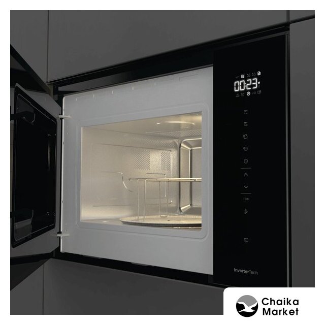 встраиваемая, микроволны и гриль, объем 25 л, выходная мощность микроволн 900 Вт, управление сенсорное, автоприготовление, авторазмораживание, цвет черный