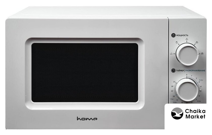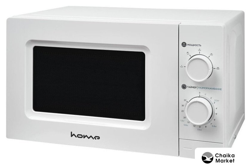 отдельностоящая, микроволны (соло), объем 20 л, выходная мощность микроволн 800 Вт, управление электронное, автоприготовление, авторазмораживание, цвет белый