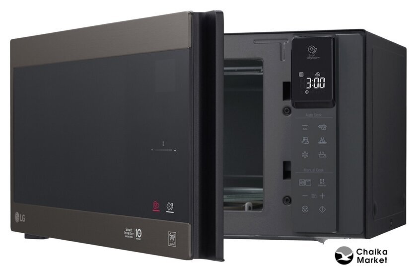 отдельностоящая, микроволны (соло), объем 23 л, выходная мощность микроволн 800 Вт, управление электронное, автоприготовление, авторазмораживание, цвет нержавеющая сталь/черный