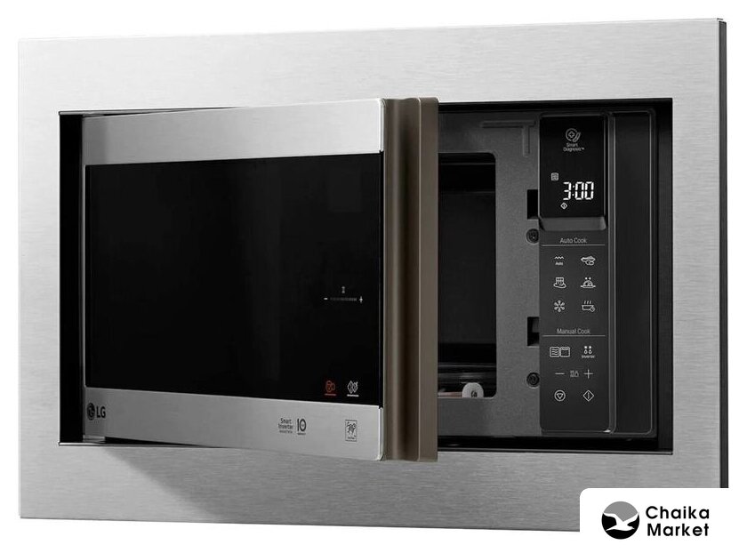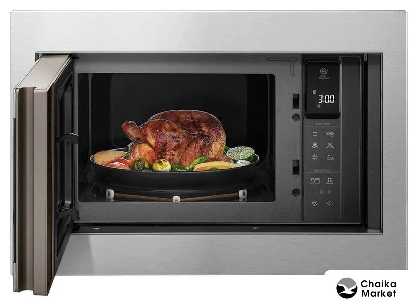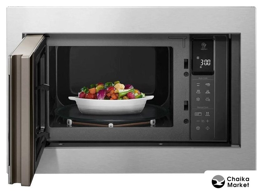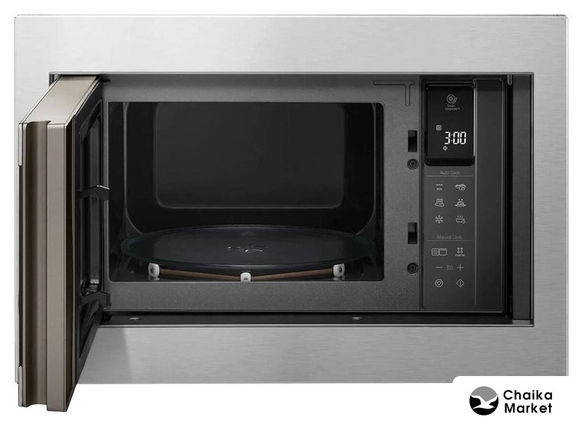 встраиваемая, микроволны (соло), объем 23 л, выходная мощность микроволн 800 Вт, управление электронное, автоприготовление, авторазмораживание, цвет нержавеющая сталь