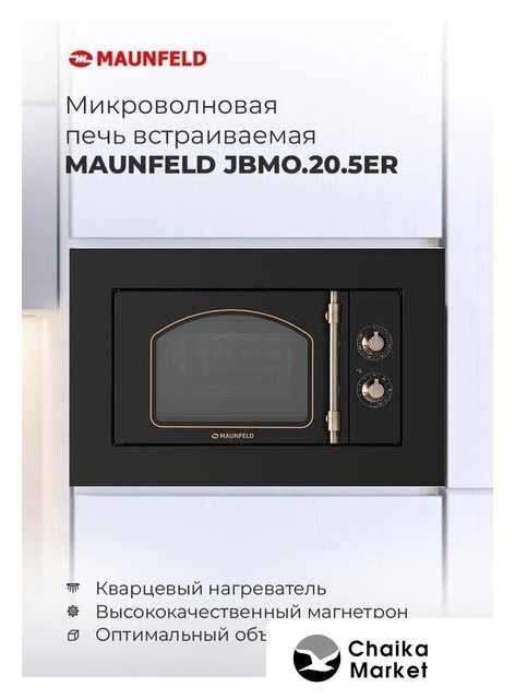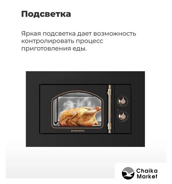 встраиваемая, микроволны (соло), объем 21 л, выходная мощность микроволн 800 Вт, управление электронное, автоприготовление, авторазмораживание, цвет черный