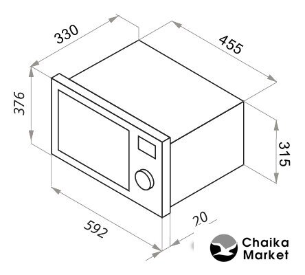 встраиваемая, микроволны (соло), объем 20 л, выходная мощность микроволн 700 Вт, управление электронное, автоприготовление, авторазмораживание, цвет черный