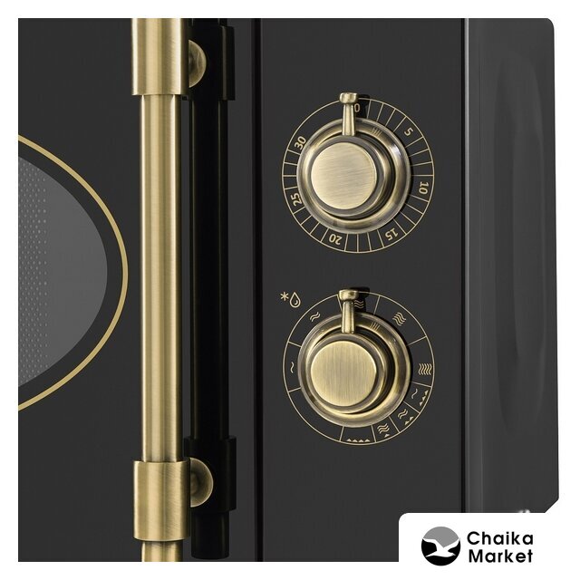 отдельностоящая, микроволны, гриль и конвекция, объем 23 л, выходная мощность микроволн 800 Вт, управление электронное, автоприготовление, авторазмораживание, цвет золотой/черный