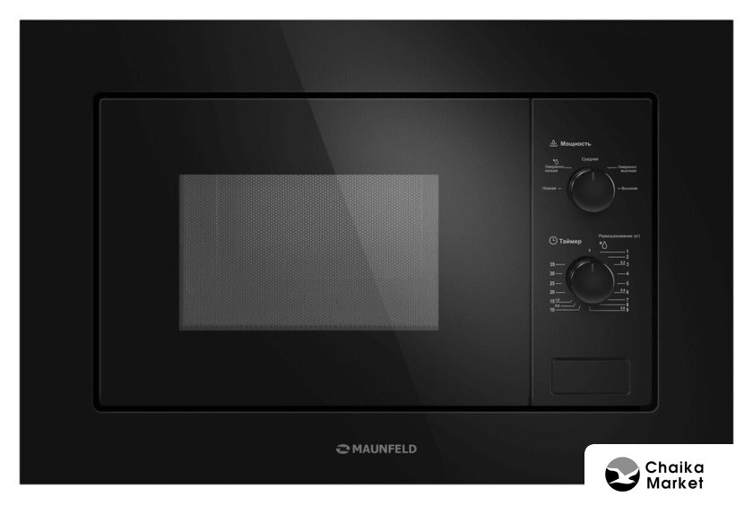 встраиваемая, микроволны (соло), объем 20 л, выходная мощность микроволн 800 Вт, управление механическое, цвет черный