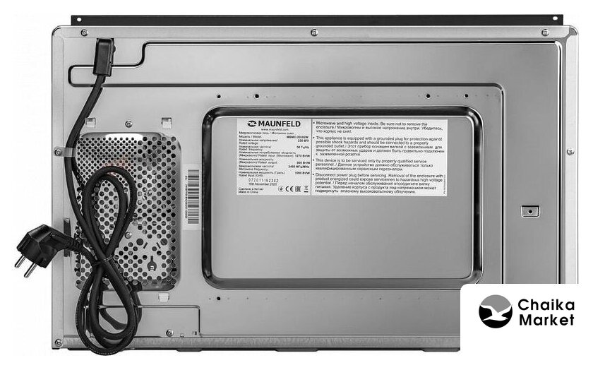 встраиваемая, микроволны (соло), объем 21 л, выходная мощность микроволн 800 Вт, управление электронное, автоприготовление, авторазмораживание, цвет черный