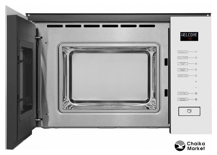встраиваемая, микроволны и гриль, объем 20 л, выходная мощность микроволн 800 Вт, управление сенсорное, автоприготовление, авторазмораживание, цвет белый