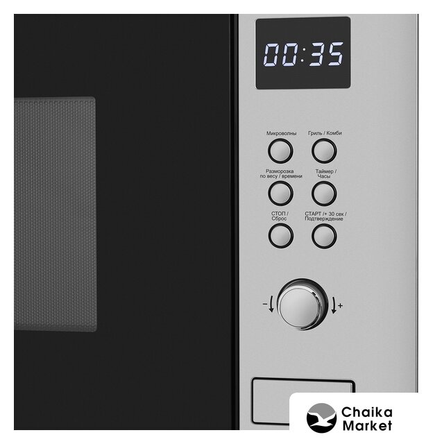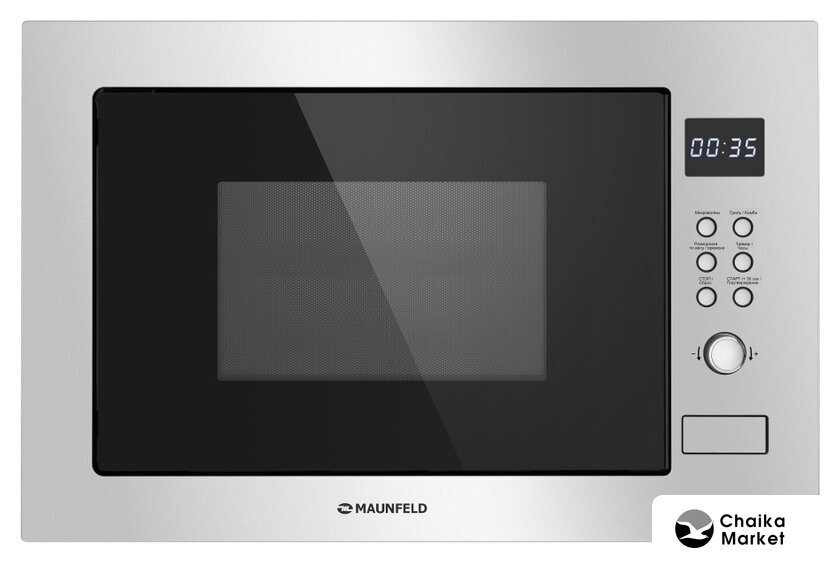 встраиваемая, микроволны (соло), объем 20 л, выходная мощность микроволн 800 Вт, управление механическое, цвет нержавеющая сталь