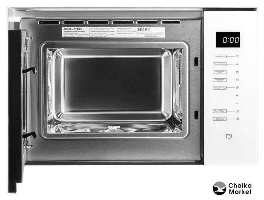 встраиваемая, микроволны (соло), объем 23 л, выходная мощность микроволн 800 Вт, управление электронное, автоприготовление, авторазмораживание, цвет нержавеющая сталь