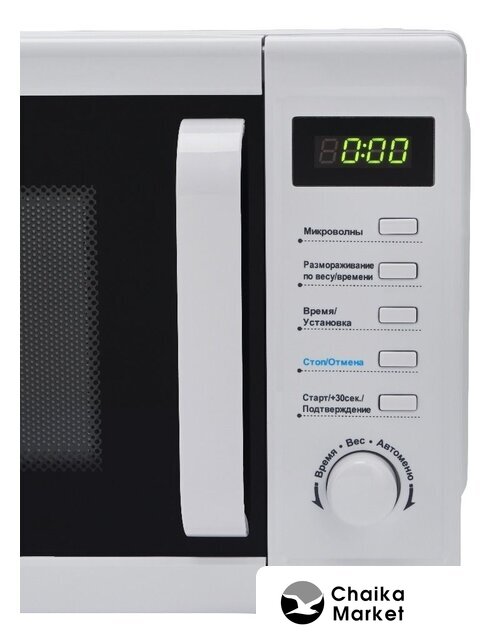 отдельностоящая, микроволны (соло), объем 20 л, выходная мощность микроволн 700 Вт, управление механическое, цвет белый
