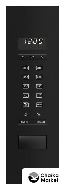 встраиваемая, микроволны (соло), объем 17 л, выходная мощность микроволн 900 Вт, управление электронное, автоприготовление, авторазмораживание, цвет черный
