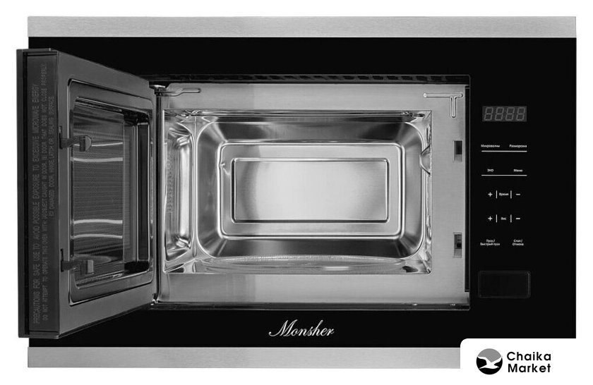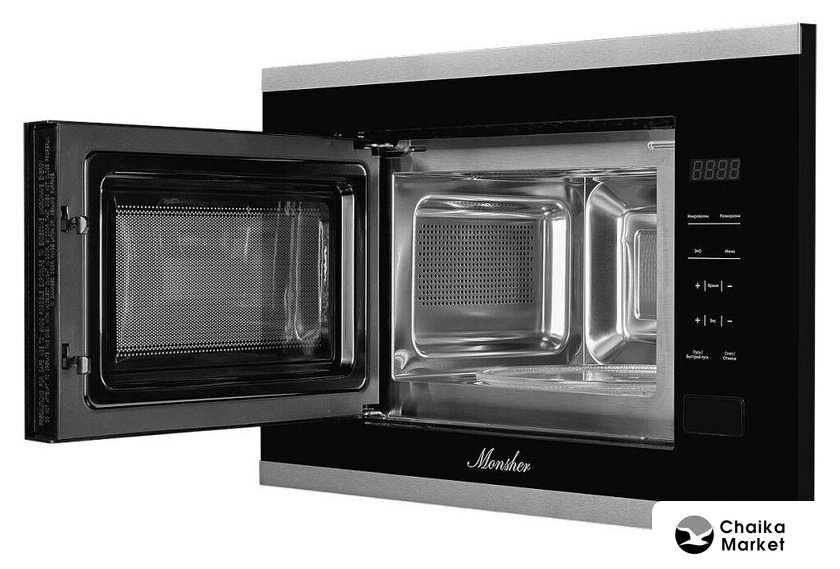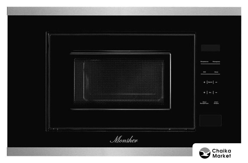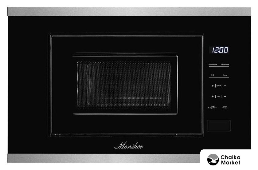встраиваемая, микроволны (соло), объем 23 л, выходная мощность микроволн 800 Вт, управление электронное, автоприготовление, авторазмораживание, цвет нержавеющая сталь