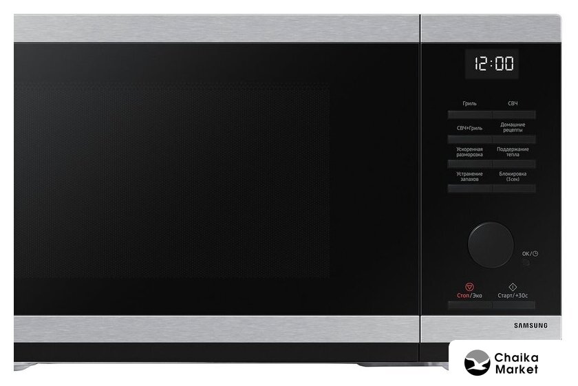отдельностоящая, микроволны и гриль, объем 23 л, выходная мощность микроволн 800 Вт, управление электронное, автоприготовление, авторазмораживание, цвет нержавеющая сталь