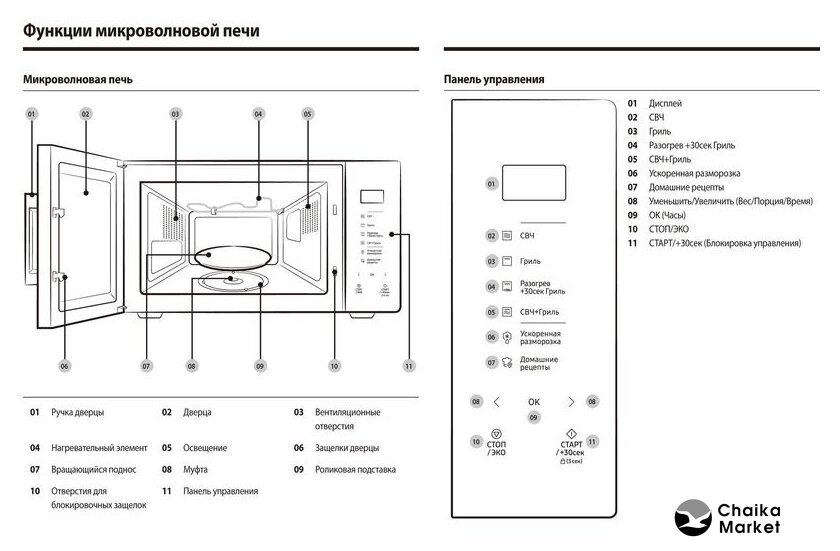 | Потребляемая мощность | 2 300 Вт (микроволн: 1250 Вт) |